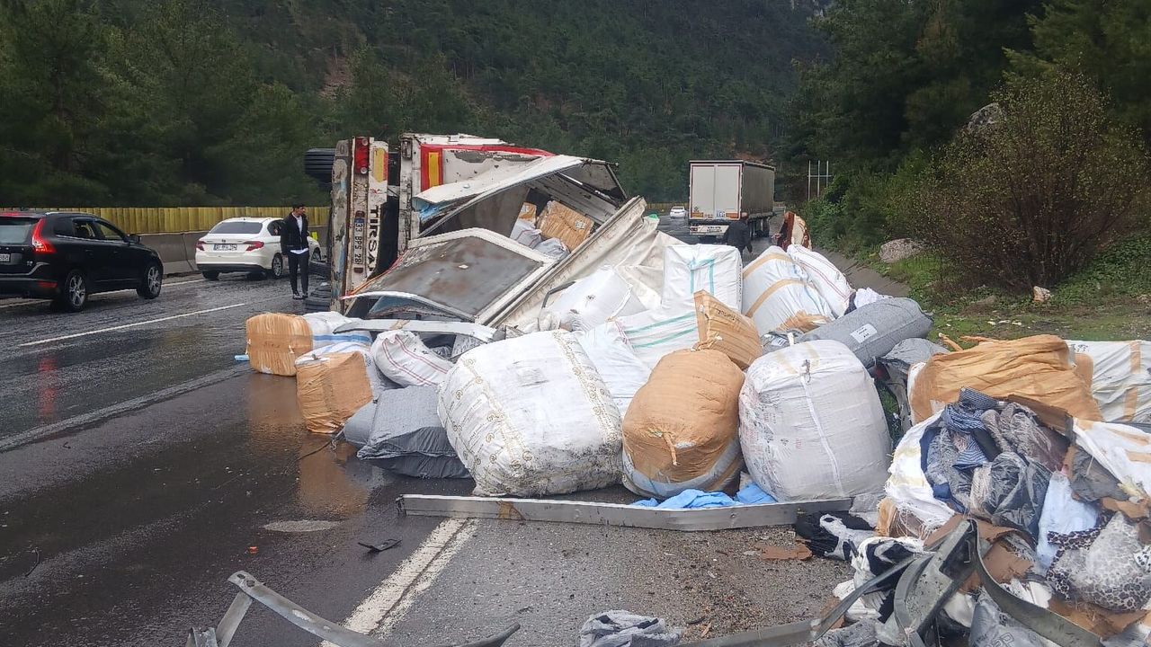 Sürücüsünün ismi ve plakası öğrenilemeyen tır, Ankara-Pozantı Otoyolu'nun Gülek mevkisinde devrildi.