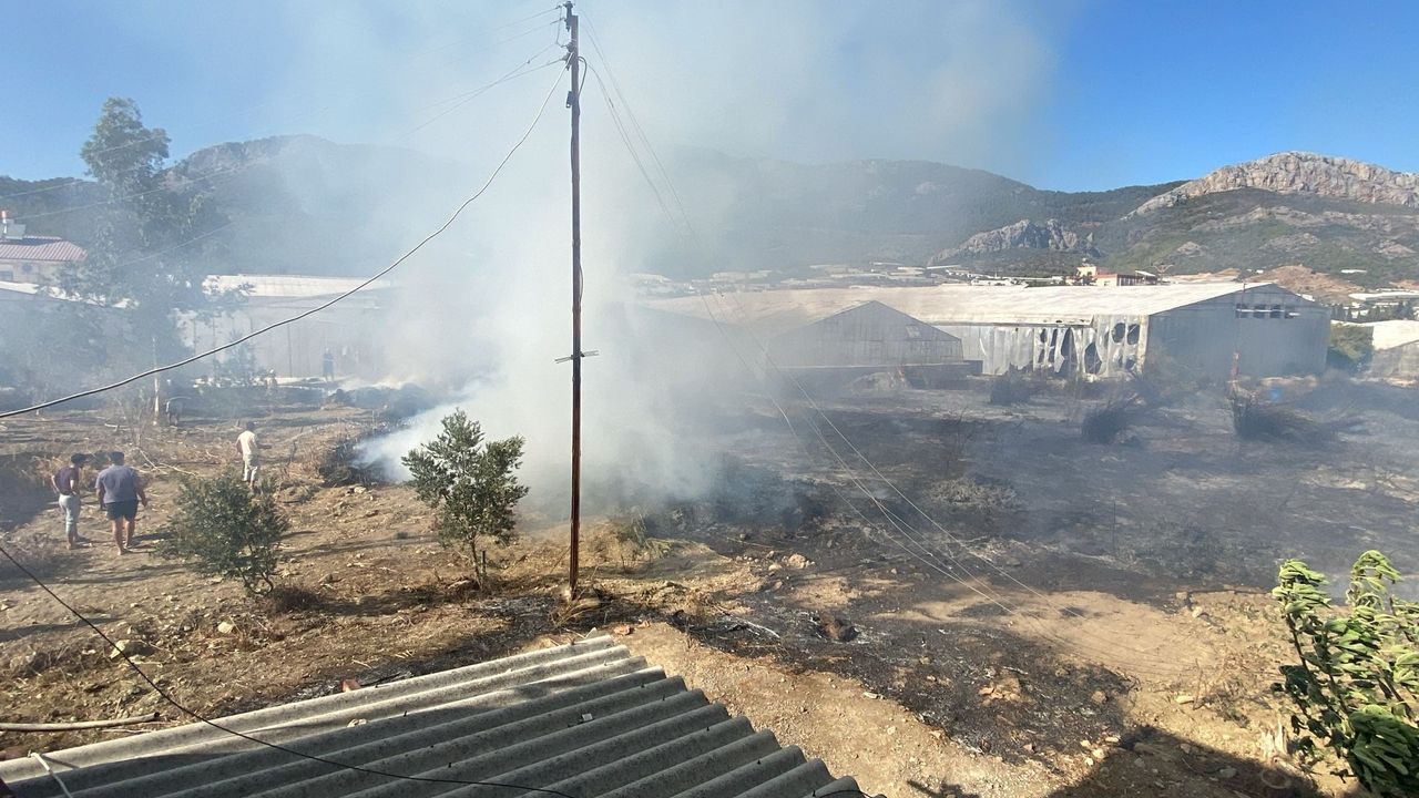 Tekeli Mahallesi'nde elektrik telinin kopması sonucu serada yangın çıktı.