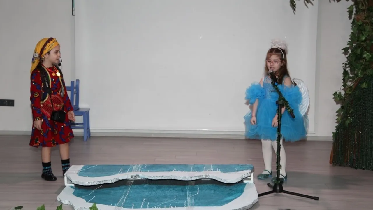 Bursa'nın Mudanya ilçesinde Halitpaşa Ortaokulu’nda, yıl sonu etkinlikleri kapsamında 5 yaşındaki “Baba Sınıfı” öğrencilerinin sahnelediği “Deniz Anadolu Diyarında” tiyatro oyunu, Anadolu’nun kültürel zenginliklerini ve dilin güzelliklerini miniklerin gözünden yansıtarak izleyicileri büyüledi.BURSA (İGFA) - Mudanya Halitpaşa Ortaokulu, “Dilimizin Zenginlikleri Projesi” kapsamında unutulmaz bir tiyatro gösterisine ev sahipliği yaptı. Okul öncesi 5 yaş grubu öğrencilerinin oluşturduğu “Baba Sınıfı”nın sahnelediği “Deniz Anadolu Diyarında” adlı oyun, büyük beğeni gördü.