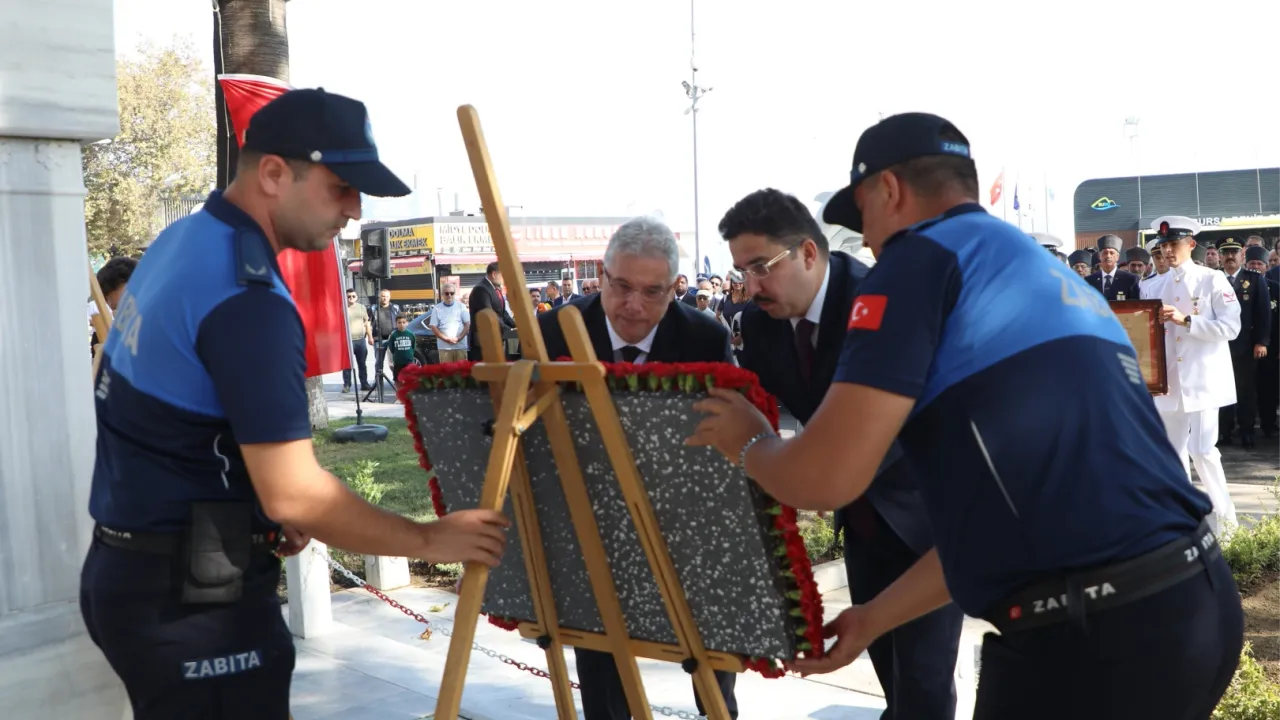 Mudanya'nın düşman işgalinden kurtuluşunun 103. yıl dönümü Cumhuriyet Meydanı'ndaki Şehitlik Anıtı'nda düzenlenen törenle kutlandı.BURSA (İGFA) - Bursa’nın Mudanya ilçesinin düşman işgalinden kurtuluşunun 103. yıl dönümü dolayısıyla Cumhuriyet Meydanı’nda düzenlenen tören, düşmana ilk kurşunu sıkan Mudanyalı kahraman Şükrü Çavuş ve 9 şehidin de yattığı Şehitlik Anıtı'na çelenk sunumu ve İstiklal Madalyası takdimiyle başladı. Törene, Mudanya Kaymakamı Ayhan Terzi, Belediye Başkanı Deniz Dalgıç, gaziler, protokol üyeleri ve çok sayıda vatandaş katıldı.