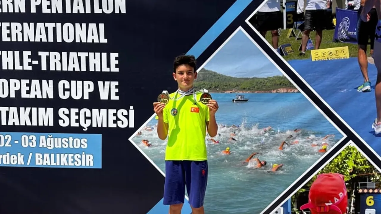 Muğla Büyükşehir Belediyesi Spor Kulübü sporcusu Kerem Batur Genç, Balıkesir’in Erdek ilçesinde düzenlenen International Biathle-Triathle European Cup ve Milli Takım Seçme Yarışmasında iki altın madalya kazanarak Türkiye Şampiyonu oldu.MUĞLA (İGFA) - U13 kategorisinde mücadele eden genç sporcu, hem Biathle hem de Triathle branşlarında birinciliği elde ederek Muğla’nın gururu oldu. 01-03 Ağustos tarihleri arasında Türkiye Modern Pentatlon Federasyonu tarafından organize edilen yarışmada Kerem Batur Genç, üstün performansıyla göz doldurdu.