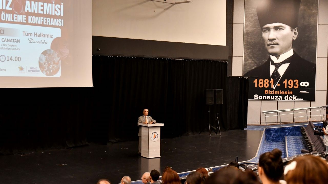 AKHAV Başkanı Prof. Dr. Duran Canatan, belediye kültür salonundaki konferansta yaptığı konuşmada, halk arasında "Akdeniz Anemisi" olarak bilinen talaseminin önlenebilir bir genetik hastalık olduğunu anlattı.