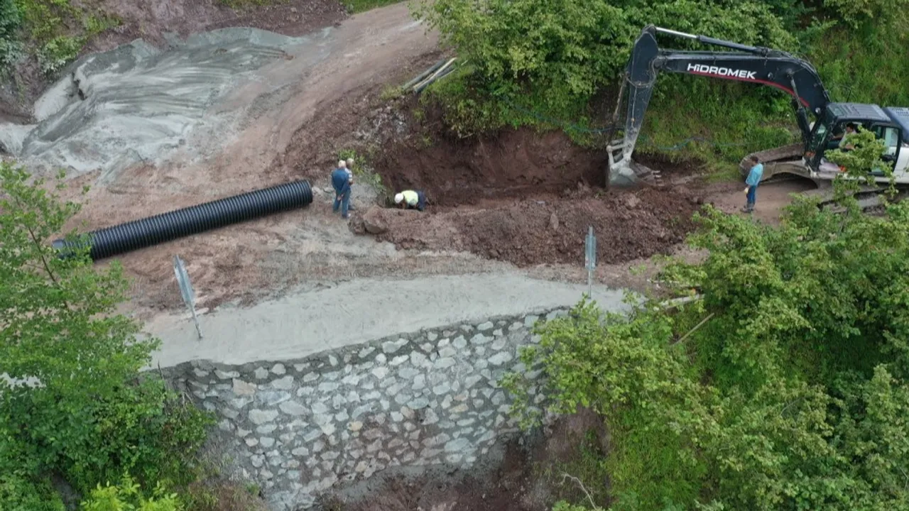 Ordu Büyükşehir Belediyesi, 19 ilçede ulaşımı konforlu ve güvenilir hale getirmek için alt ve üst yapı çalışmalarını sürdürüyor.ORDU (İGFA) - Ordu Büyükşehir Belediyesi, 19 ilçede ulaşımı konforlu ve güvenilir hale getirmek için alt ve üst yapı çalışmalarını sürdürüyor. Bu kapsamda, Fatsa ilçesine bağlı Yavaş Mahallesinde, özellikle büyük araçların geçişini zorlaştıran ve olumsuz hava koşullarında tehlike oluşturan yol altındaki toprak kaymasına karşı önemli bir müdahale gerçekleştirildi.