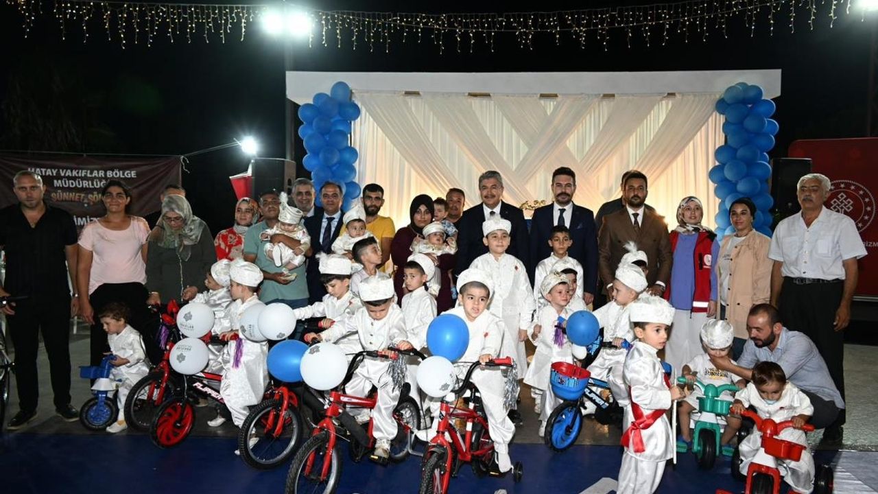 Hatay Vakıflar Bölge Müdürü Adem Bozkurt'un da katıldığı etkinlikte sünnet olan çocuklara bisiklet hediye edildi.