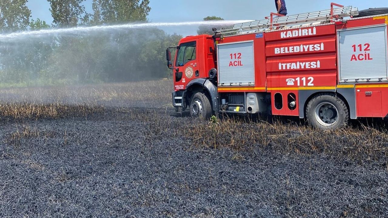 OSMANİYE (AA) - Osmaniye'nin Kadirli ilçesinde bir tarlada çıkan yangında, 20 dönüm buğday ekili alan zarar gördü.