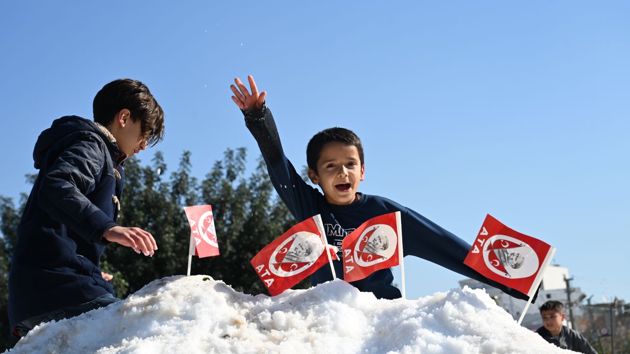 Kadirli Belediyesi, ilçedeki öğrencilere karne hediyesi olarak yüksek kesimlerden kamyonlarla getirilen karla sürpriz yaptı.