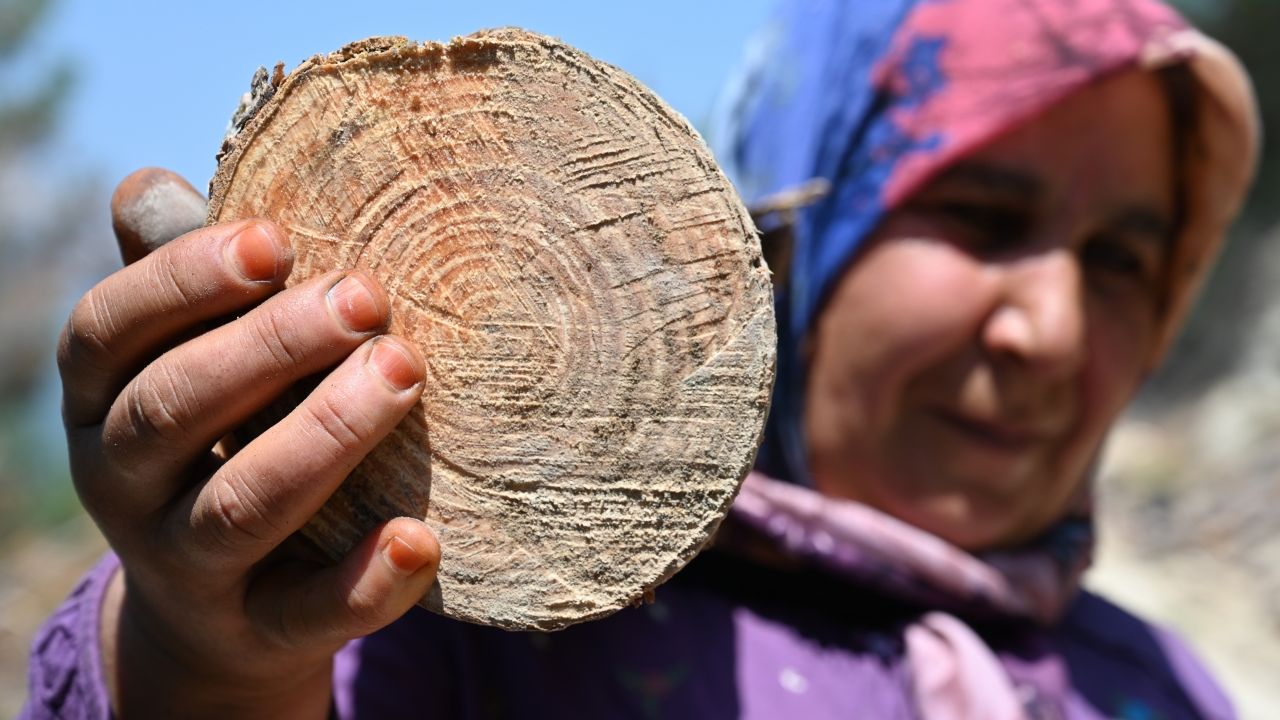 Yaşlanmış, kurumuş veya yangından etkilenmiş ağaçları kestiklerini dile getiren Kaya, müdürlük ekiplerinin ölçtükleri kütükleri metreküp hesabıyla satın aldığını anlattı.