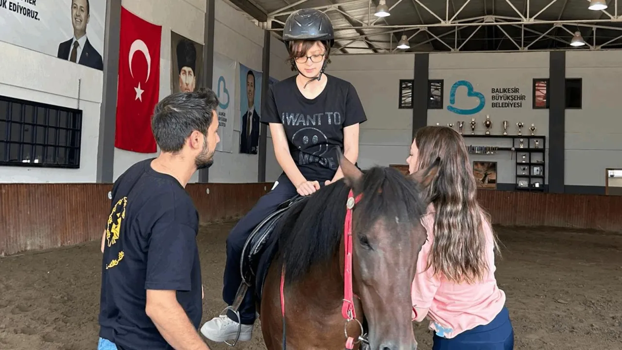 Balıkesir Büyükşehir Belediyesi, özel bireylerin gelişimine sunduğu katkıyla örnek bir belediyecilik hizmetine daha imza attı. Bandırma’da hizmete açılan Binicilik Spor ve Rehabilitasyon Merkezi sağlık, spor ve sosyal yaşamı bir araya getirerek kente değer katarken, 65 özel bireyi de ücretsiz hipoterapi uygulamasıyla buluşturdu.BALIKESİR (İGFA) - Balıkesir Büyükşehir Belediyesi, Bandırma Doğruca Mahallesi Bursa-Çanakkale Yolu üzerindeki Binicilik Spor ve Rehabilitasyon Merkezi’nde örnek bir belediyecilik hizmetini daha hayata geçirdi. Hem sağlık hem spor hem de sosyal yaşamı bir çatı altında buluşturan merkezde, dezavantajlı bireylerin gelişimine katkı sağlayan hipoterapi uygulamaları başlatıldı. Atlar aracılığıyla gerçekleştirilen hipoterapi uygulamalarıyla dezavantajlı bireylerin fiziksel, zihinsel ve duygusal gelişimleri destekleniyor. Balıkesir Büyükşehir Belediyesi Engelsiz Yaşam Merkezi’ndeki 65 öğrenci, Perşembe ve Cuma günleri olmak üzere haftada iki gün bu uygulamadan ücretsiz olarak yararlanıyor. Hipoterapinin faydaları arasında; doğru duruş ve yürüyüşün geliştirilmesi, baş ve gövde kontrolünün artırılması, kas kuvvetinin düzenlenmesi, duyu bütünlüğü ve regülasyonun sağlanması, denge ve koordinasyonun gelişmesi, özgüven, sosyal etkileşim ve zihinsel rahatlama yer alıyor.