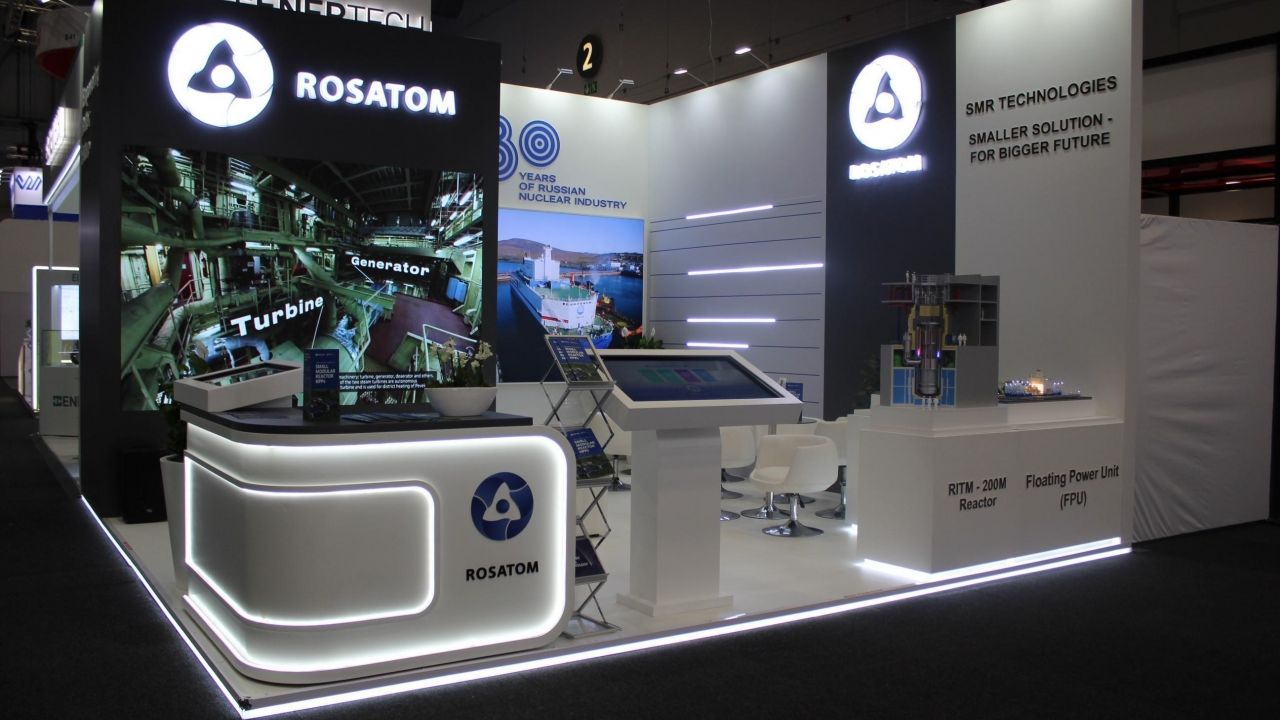 Rosatom'un fuar standında, yüzer enerji üniteleri teknolojilerine ilişkin multimedya sunumu, RİTM-200 reaktörünün ölçekli modeli ve sondajlı yer altı liç yöntemiyle uranyum çıkarımı gibi çözümler sergilendi.