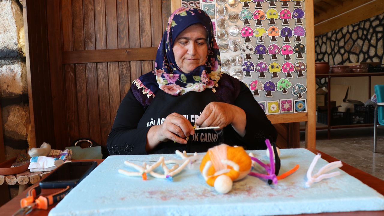 Usta Öğretici Rukiye Kantekin de keçe sanatları alanında 2021 yılında ilçede kurs açtıklarını, üç dönem kursiyer yetiştirdiklerini ifade etti.