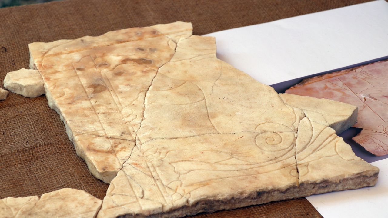 Mermer levhalara kazıma tekniğiyle işlenen figürlerin, Mısırlılaştırılmış bir dekorasyon programına ait olduğu belirlendi.