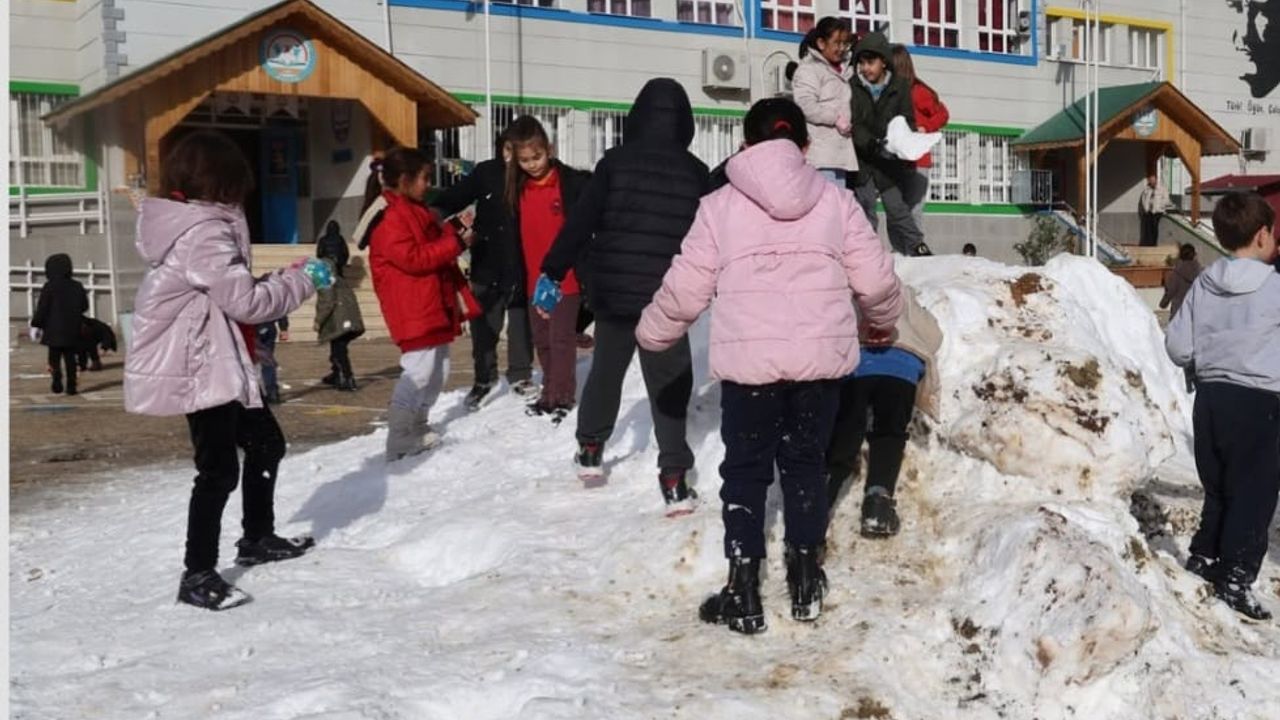 ADANA (AA) - Saimbeyli Belediyesi ekiplerince öğrencilerin oynaması için Kozan ilçesindeki okula kar taşındı.
