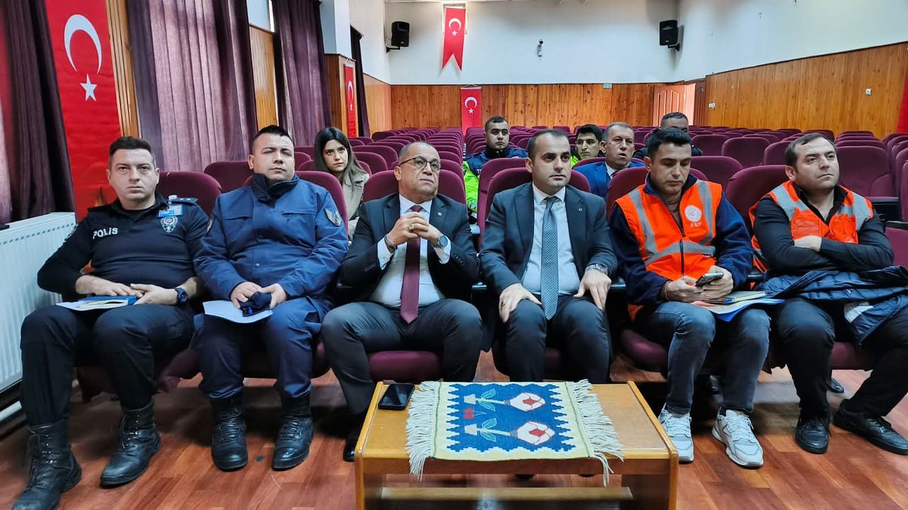 Halk Eğitim Merkezi Şehit Adil Ay Konferans Salonu'nda gerçekleştirilen toplantıda, kış aylarında yaşanabilecek olumsuzluklara karşı kurumların koordinasyonu, yol güvenliği, acil durum planlaması ve saha ekiplerinin hazırlıkları gibi konular ele alındı.