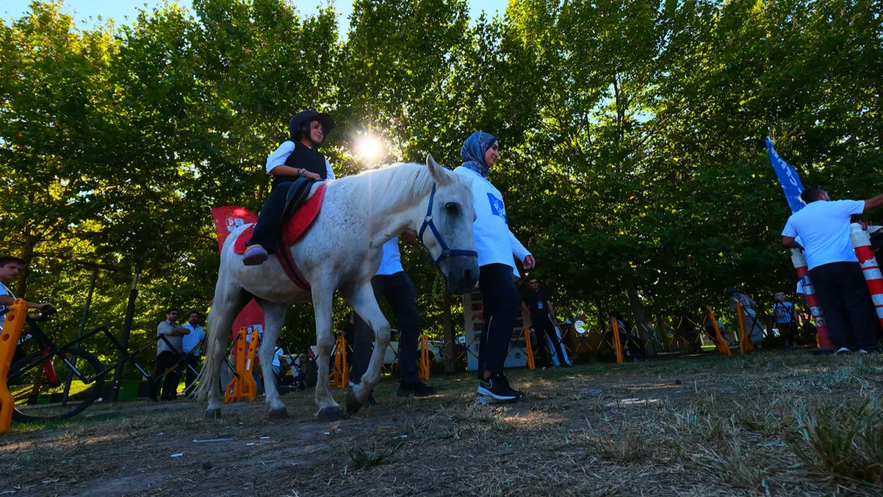 Üç gün sürecek etkinlikte, çocuklar özel olarak hazırlanan alanda pony cinsi atlarla buluşma fırsatı yakaladı. Diğer at ırklarına göre daha küçük yapılarıyla dikkat çeken sevimli pony atlara binen çocukların heyecanı ve mutluluğu yüzlerinden okundu.