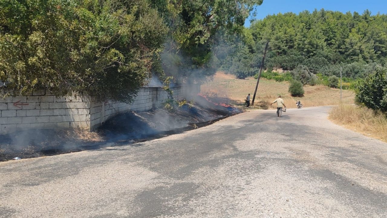 Gönüllü vatandaşların da destek verdiği yangın, yakındaki ormanlık alana sıçramadan söndürüldü.