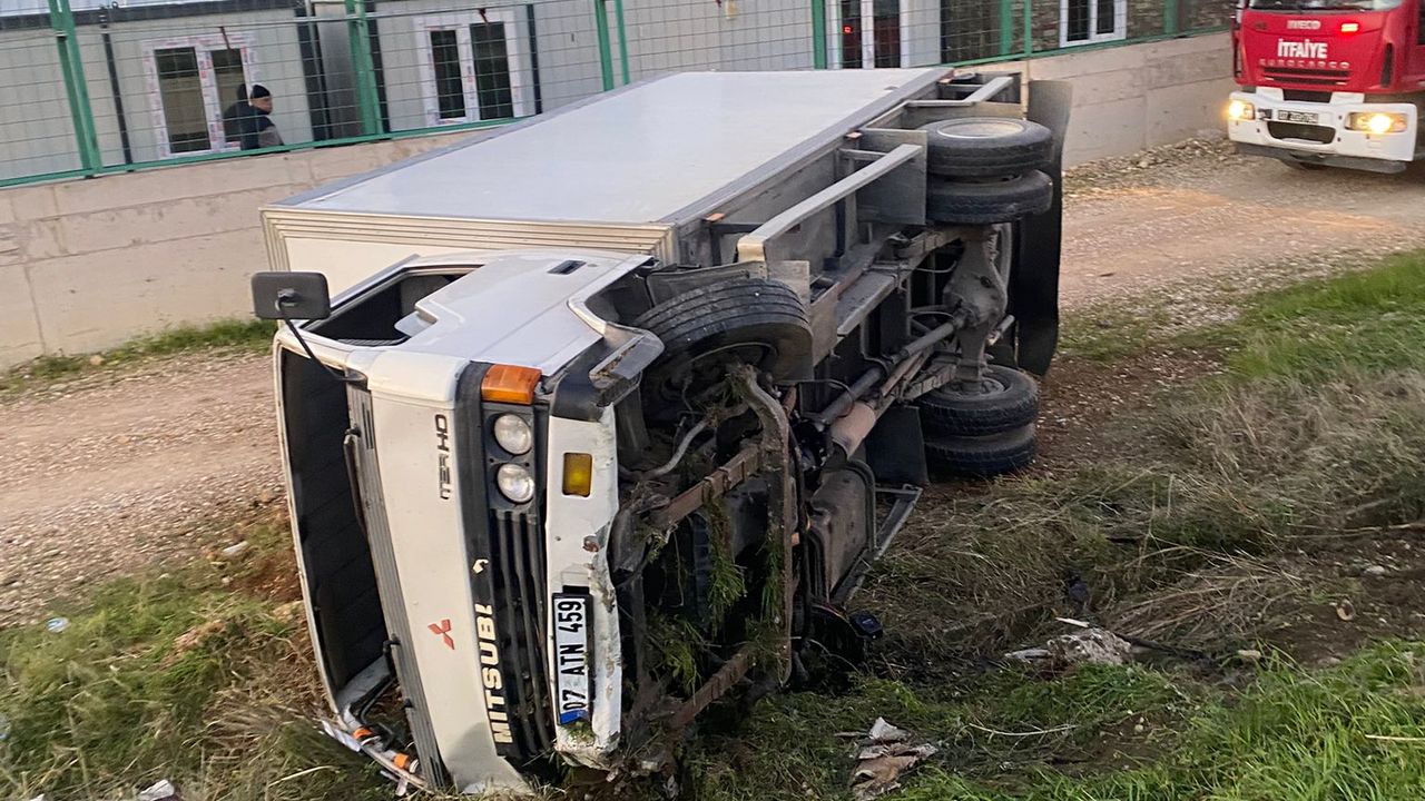 M.T. idaresindeki 07 ATN 459 plakalı kamyonet, Antalya-Alanya D-400 kara yolu Çandır Kavşağı yakınlarında şarampole devrildi.