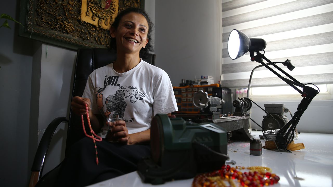 Hafta içi her gün Vakıflar Tesbihçiler ve Antikacılar Çarşısı'ndaki atölyelerinin yolunu tutan 3 çocuk sahibi çift, kehribar, oltu, narçıl ve kuka gibi ham maddelere şekil veriyor.