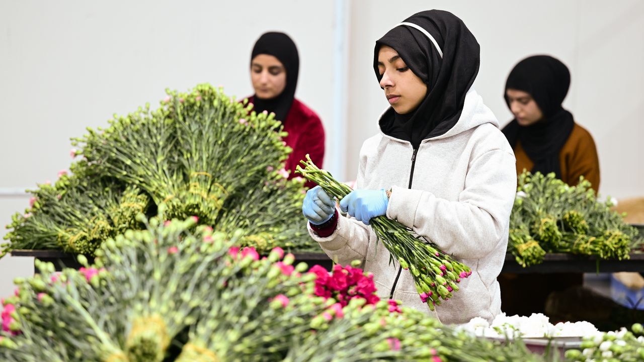 Çiçek sektöründe, aralık ayının başından itibaren yılbaşı hareketliliği yaşanıyor. Seralardan toplanan çiçekler, paketleme tesislerinde ambalajlanarak yurt içine ve dışına gönderiliyor.
