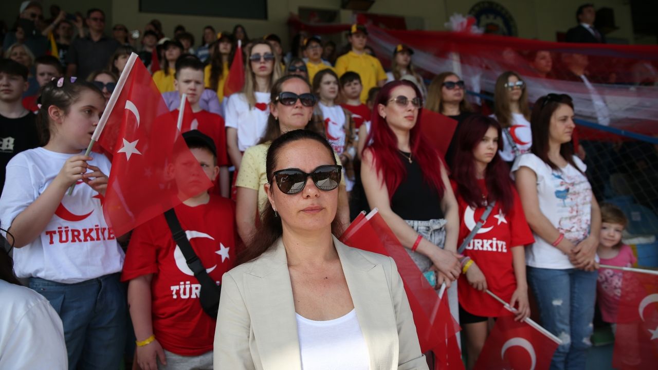 Ukraynalı çocuklar, Milli Egemenlik Stadı'ndaki 23 Nisan Ulusal Egemenlik ve Çocuk Bayramı kutlama programına katılarak eğlendi.