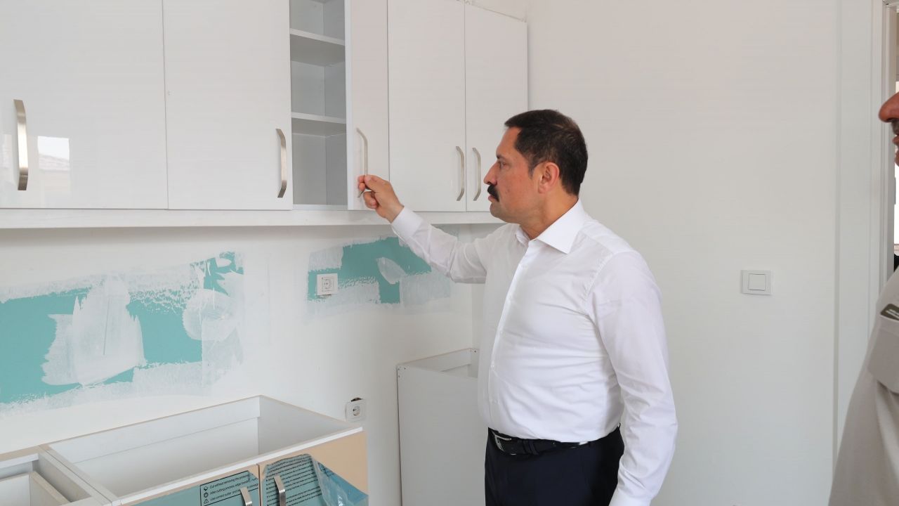 Vali Masatlı, Beşaslan Mahallesi'nde yapımı süren 41 köy tipi afet konutunu inceleyerek, evlerin hak sahiplerine hayırlı olmasını diledi.