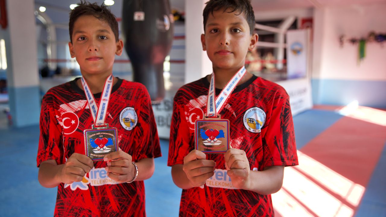 Baba Serkan Midik, komşuların şikayeti üzerine hiperaktif olan oğullarının enerjilerini atabilmeleri için 3 yıl önce boks kursuna yazdırdı.
